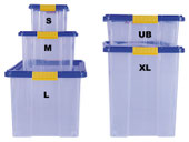 Aus transluzentem Polypropylen, in verschiedenen Grössen, mit oder ohne Deckel, grosse Boxen mit Rollen...