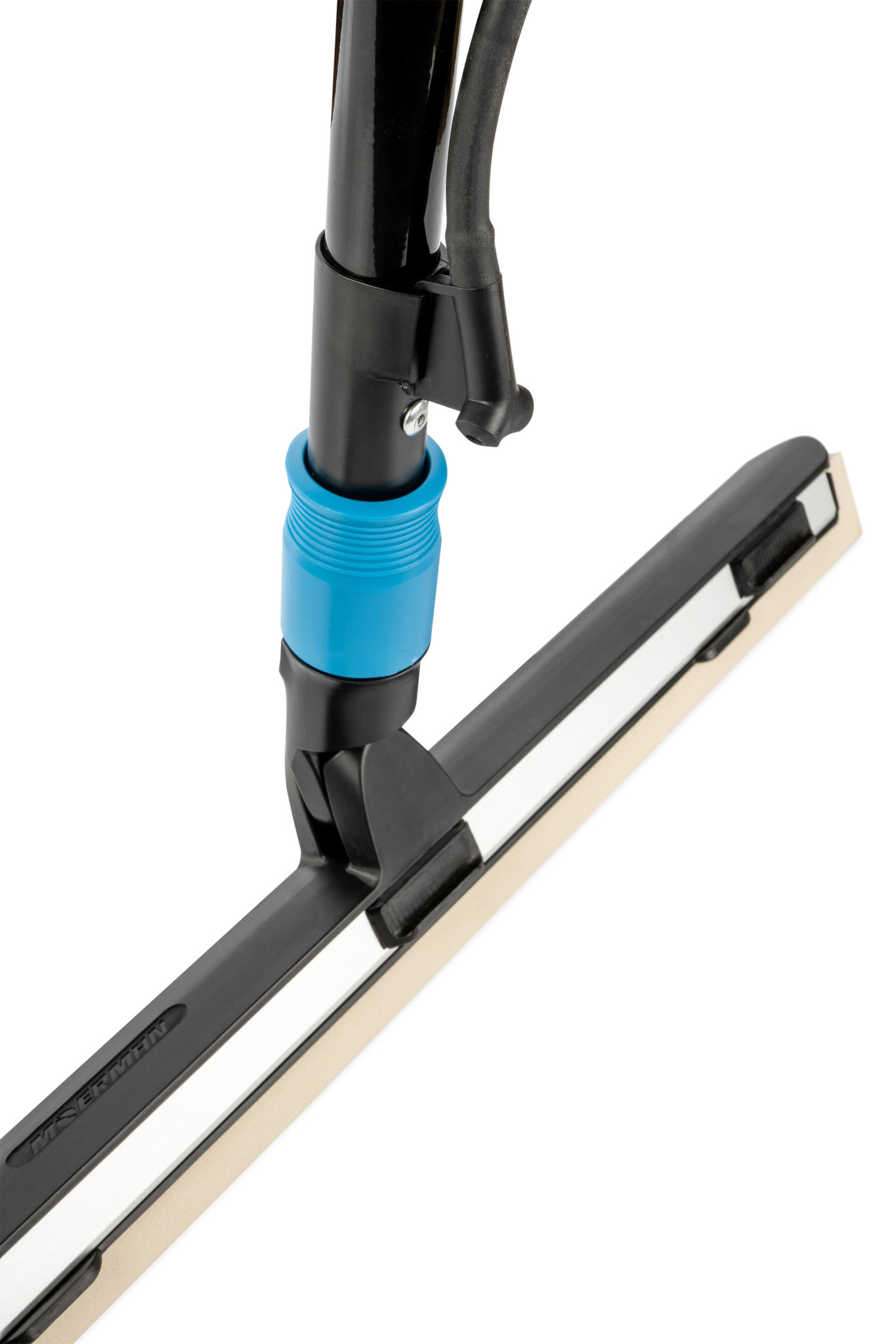 Starterset komplett mit 2 Mopbezügen; 1 x Microfaser saugstark, 1 x Mikrofaser scheuernd. Aus Aluminium, mit Teleskopstiel, mit Wasserschieber aus Dura-Flex Naturgummi und Flüssigkeitsbehälter. Alle Teile auch separat erhältlich. Verlangen Sie eine Vorführung.