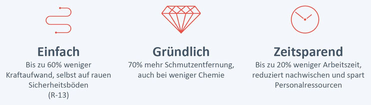 Das CLEVER & SMART CLEANING SYSTEM ermöglicht Ihnen das Reinigen mit einem immer sauberen Mopbezug mit der idealen Feuchtigkeit ohne sich dabei zu bücken oder sich die Hände nass oder schmutzig zu machen. Das einfach zu bedienende Reinigungssystem bringt durch Auf- und Abbewegungen des Mops im Eimer «Wasserkammer WASH» Wasser an den Mopbezug und entfernt mittels Schaber feine und grobe Schmutzpartikel. Der Mopbezug kann mit der Anzahl Bewegungen im Eimer «Trockenkammer DRY» auf die gewünschte Trockenstufe gebracht werden und sorgt für eine saubere Reinigung auf allen Bodenbelägen. Beachten Sie auch die Abbildungen auf der Verpackung.